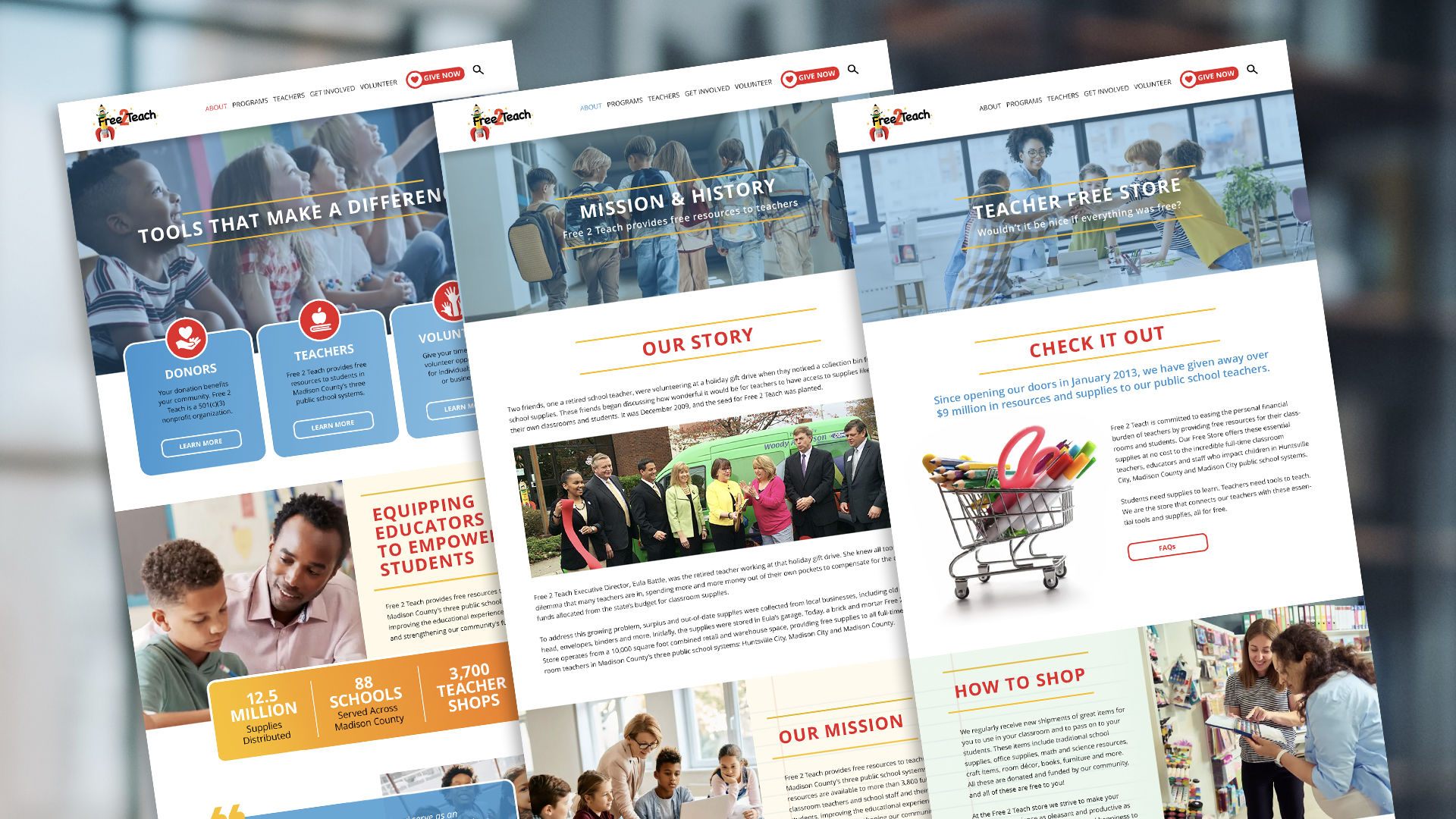 Free 2 Teach needed help launching a first-of-its-kind nonprofit to serve local teachers with free classroom supplies. As they grew, they needed a refreshed brand and website to reflect a wider regional impact.